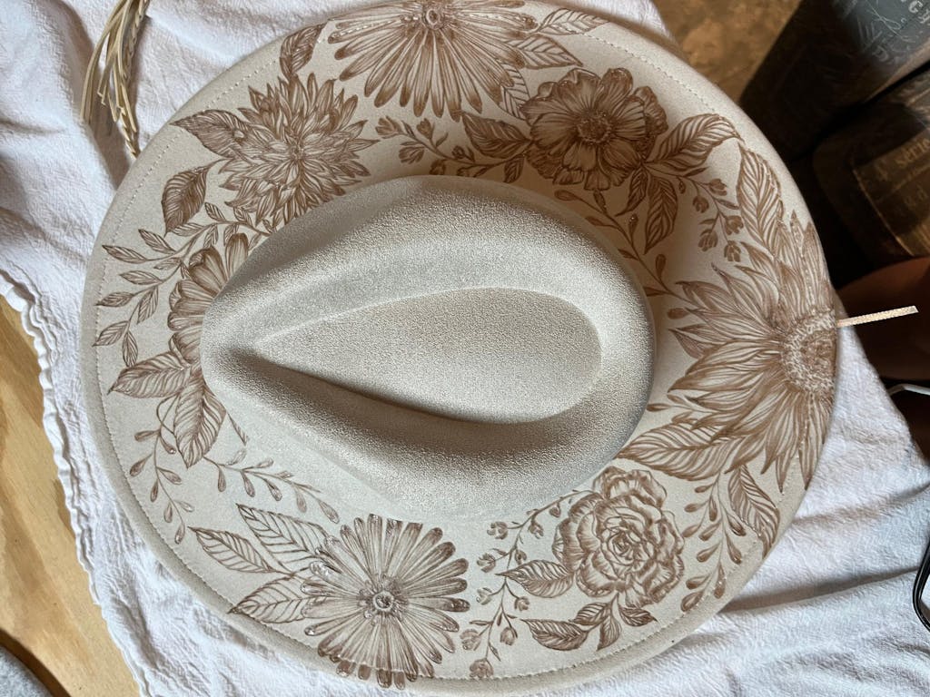 A good sturdy hat to decorate and will even take the heat of a wood burning tool for designing.
