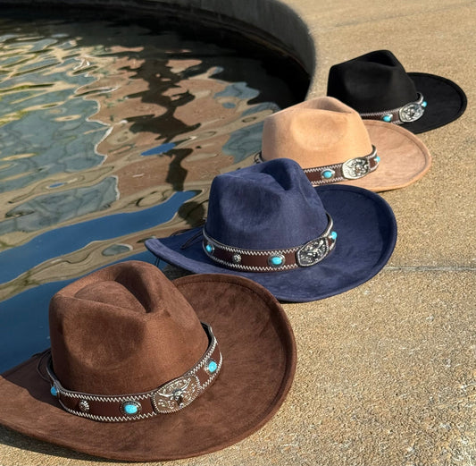 Vegan Suede Cowboy Hat Solid, Solid Cowboy Hat for Burning,Pinched Cowboy Hat, Rancher Hat, Hat for customization