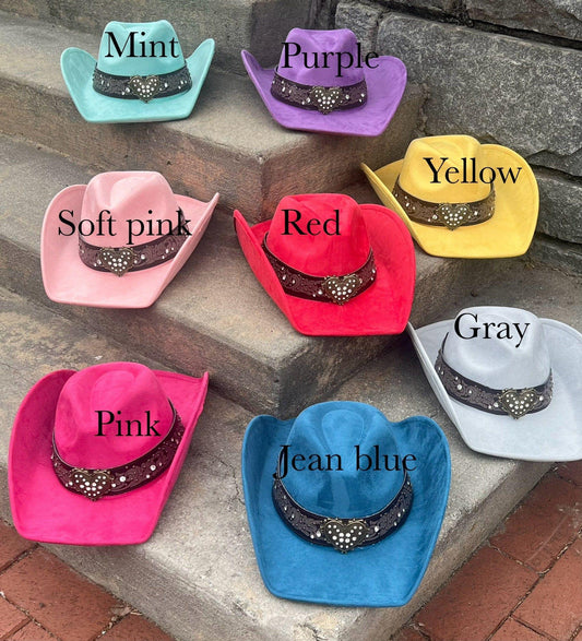 Hearted Vegan Suede Cowboy Hat, Solid Cowboy Hat forBurning,Pinched Cowboy Hat, Rancher Hat, Hat for customization